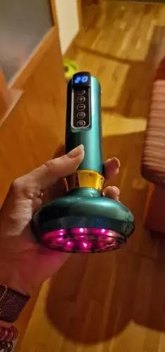 The gentle heat function enhances blood flow, eases muscle tightness, and speeds up the deep penetration of body serums or oils for optimal skin elasticity.